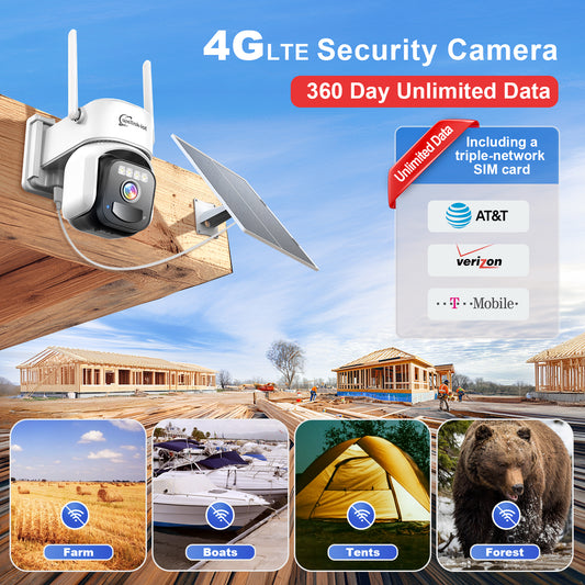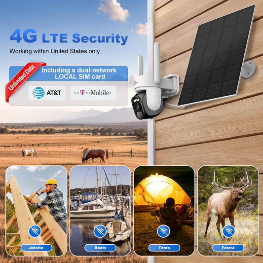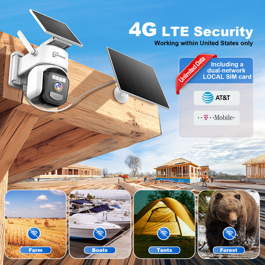 4G LTE Cellular Security Camera Outdoor with Dual Solar Panels, Includes 360-Day Unlimited IoT Data