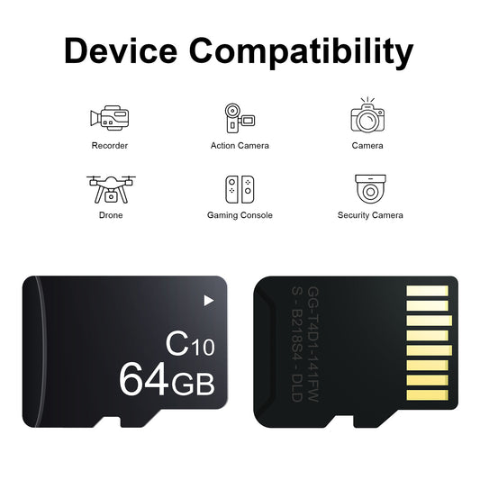 64GB Micro SD Memory Card, C10, A2, U1, 2K Full HD & High Speed TF Card for Security Cameras, Action Cameras, Cameras, Drones, Gaming Consoles, Recorders Storage, etc.